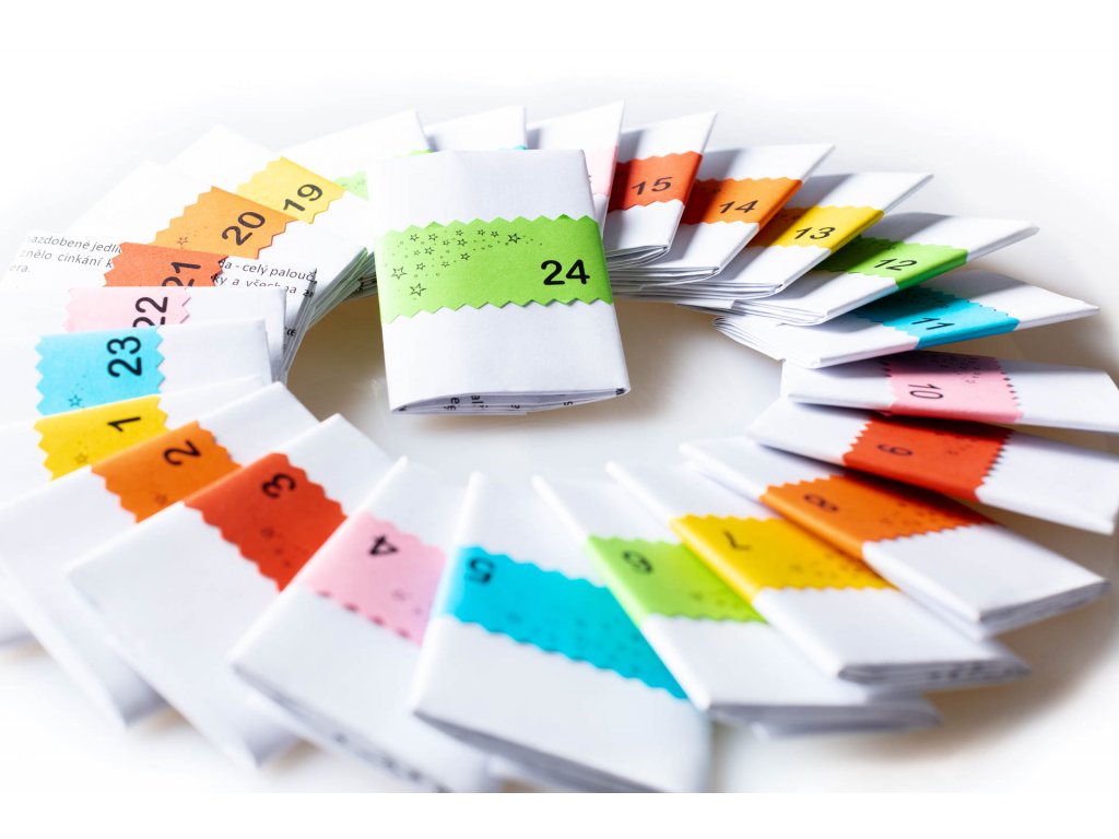 V případě objednávky Adventního kalendáře s pohádkovou náplní jsou pohádky vytištěné a zabalené tak, abyste je mohli rovnou vložit do pytlíčků a nemuseli sami nic chystat.