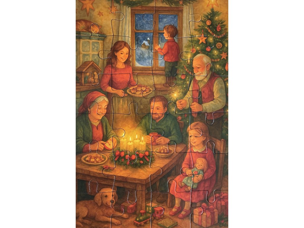 Každý adventní den přidáte jeden kousek puzzle do skládačky. Zní to trochu bláznivě, ale je to skvělé! Na každém dílku je totiž nějaký obrázek a všechny dohromady pak dají krásný originální obrázek s motivem Vánoc v lese.