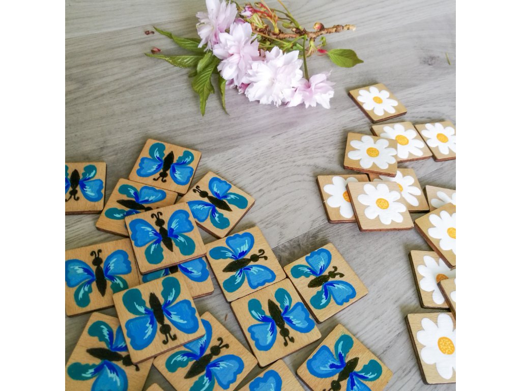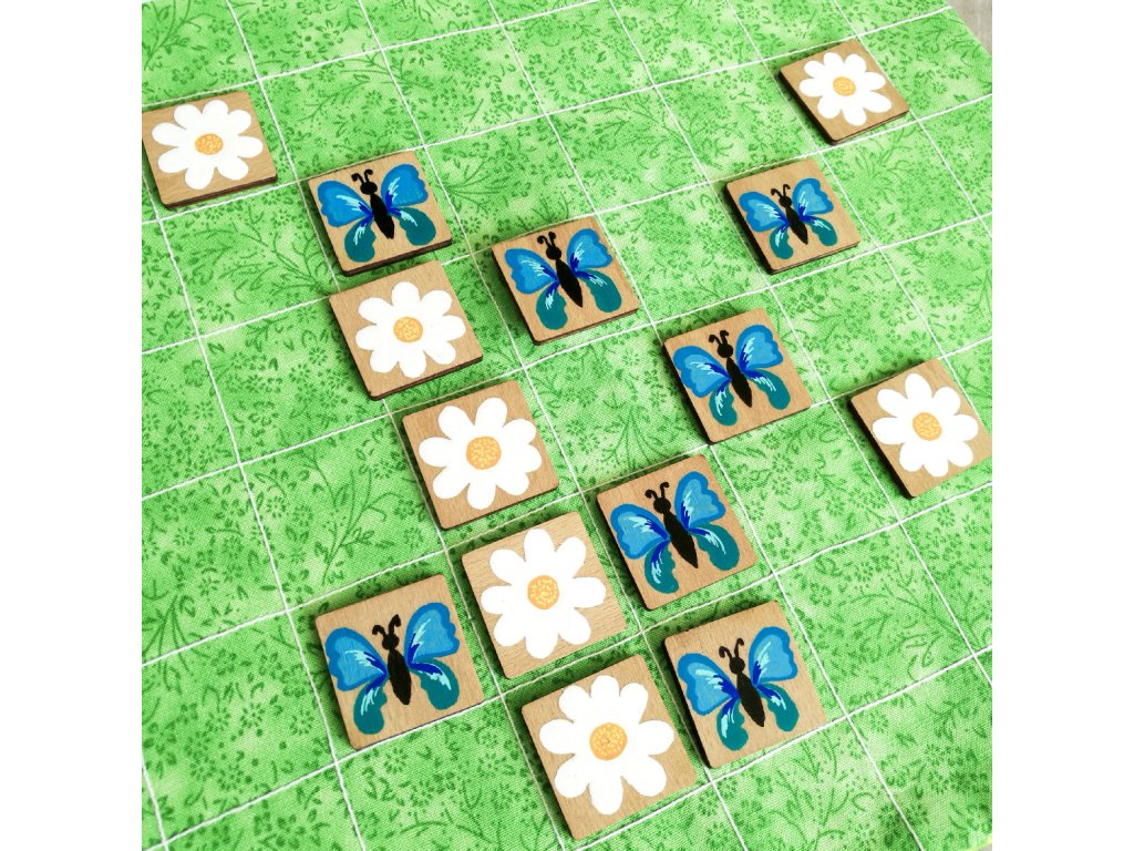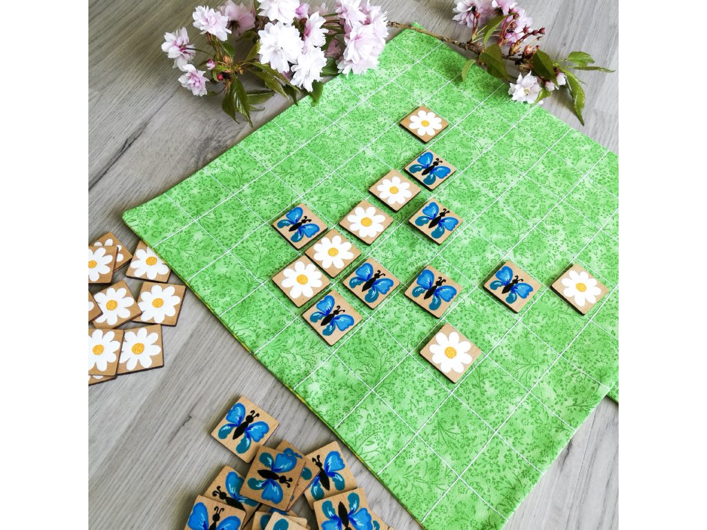Každý čtvereček je pečlivě obroušený, namalovaný a následně nalakovaný, aby vám hra dlouho vydržela. Látková hrací plocha má vyšitou mřížku a dá se složit a sepnout na knoflík, aby se pohodlně vešla do pytlíčku.