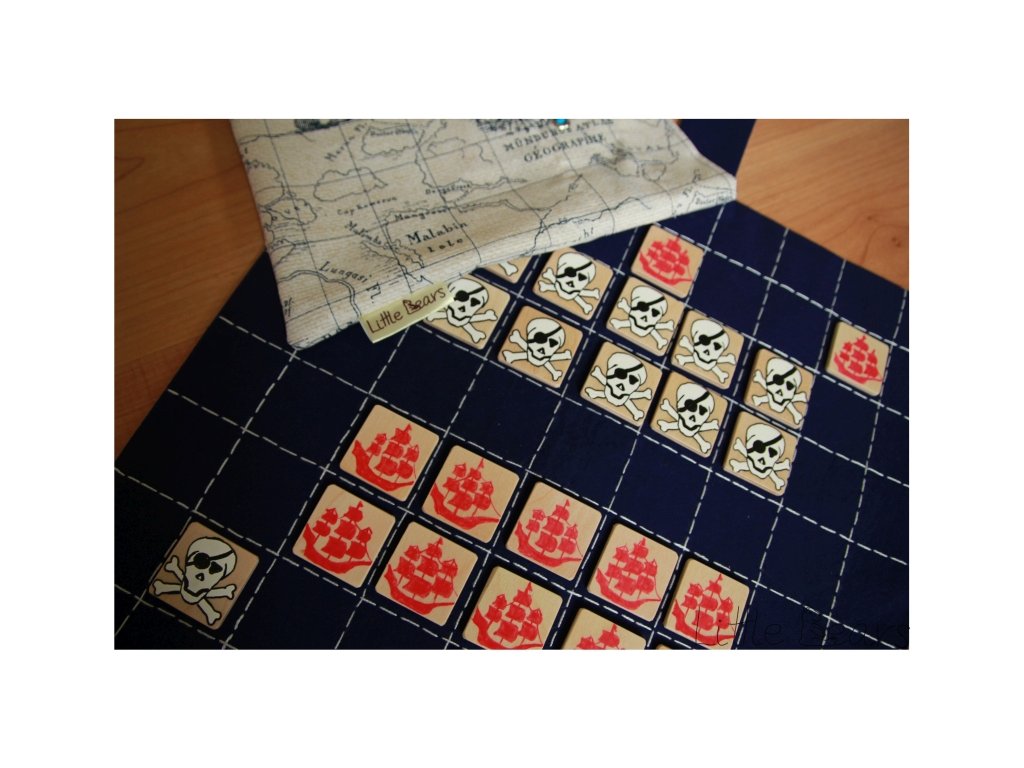 20 kusů čtverečků s motivem plachetnice a 20 kusů čtverečků s motivem lebky s překříženými hnáty